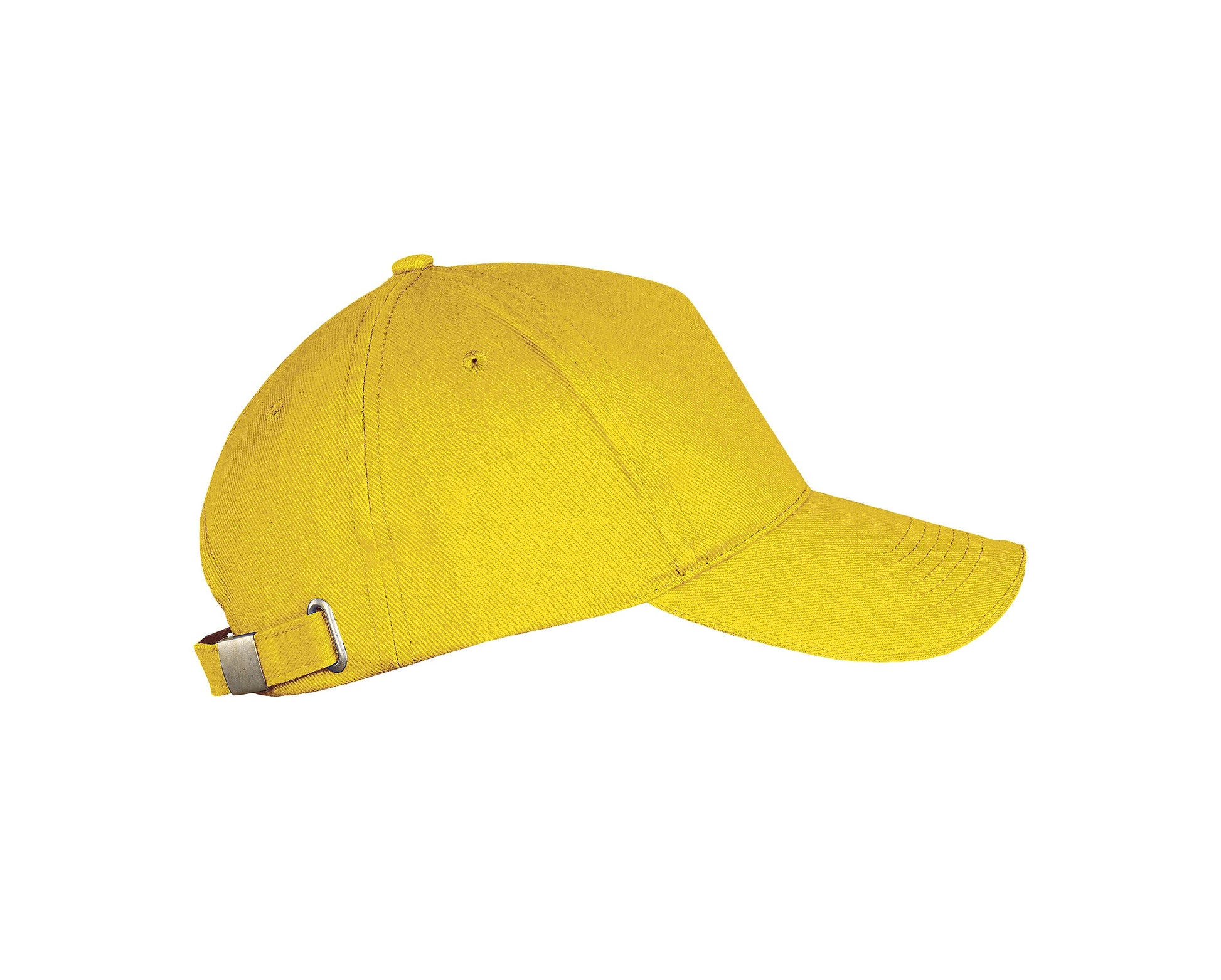 Confectionnée en 100 % coton brossé (twill 260 g/m²), avec visière préformée, languette de réglage à boucle métallique et 5 panneaux pour un marquage facilité. Structure robuste et agréable à porter.