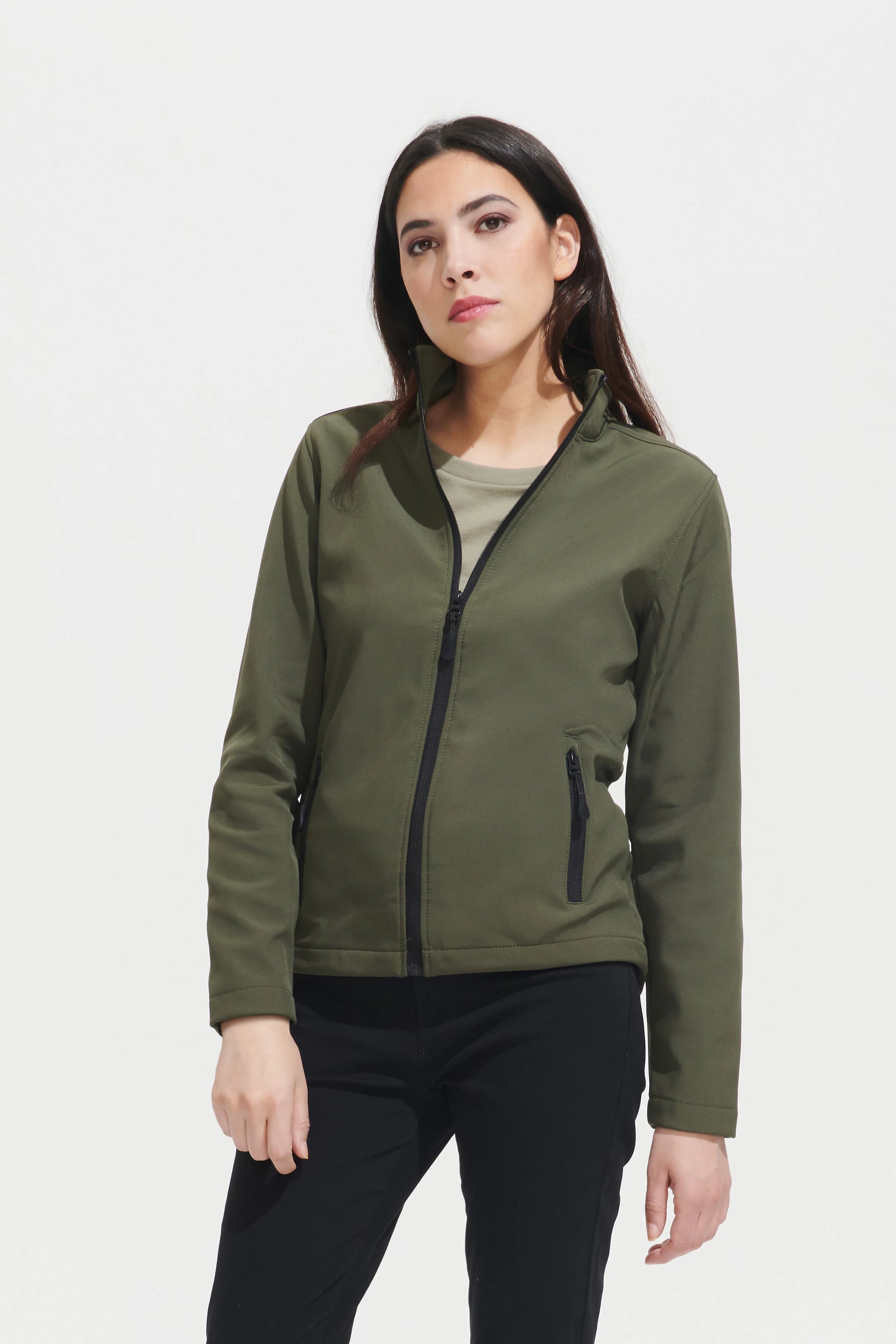 Confectionnée en tissu softshell 2 couches offrant un excellent rapport qualité-prix. Zip SBS, coupe féminine ajustée.